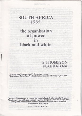 SOUTH AFRICA 1985 the organisation of power in black and white